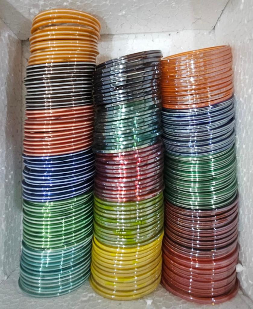 Nafees/Luster and Striped Bangles set of 16 shades, size 2.4