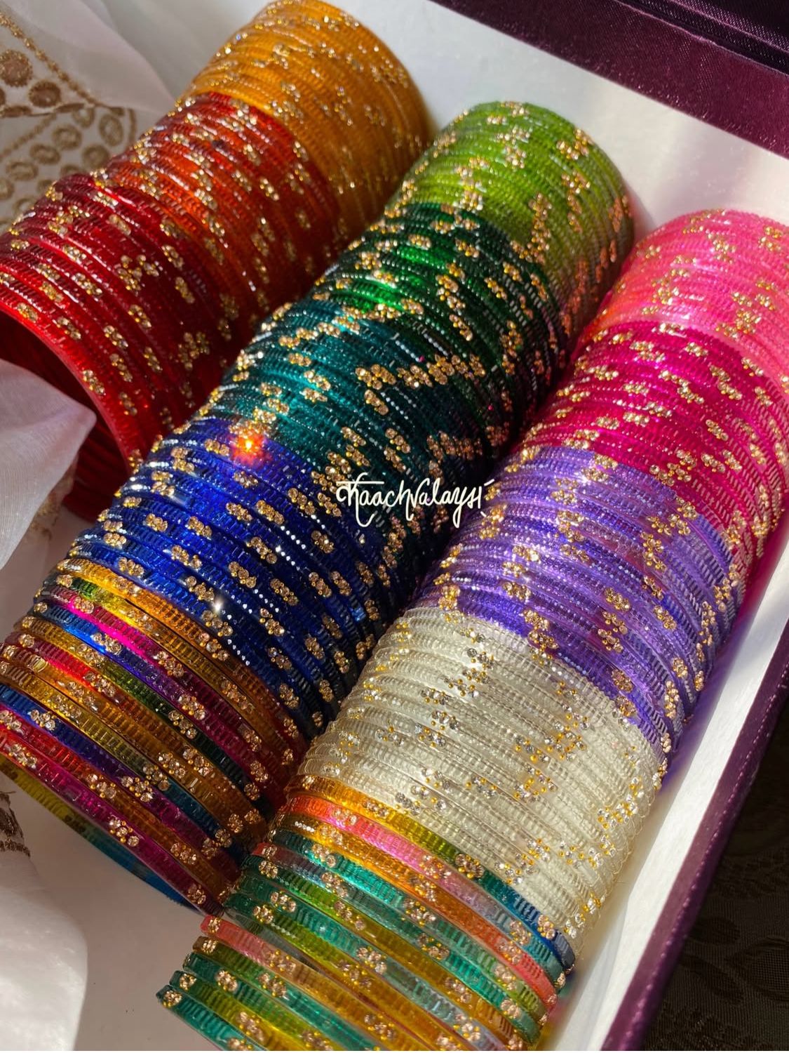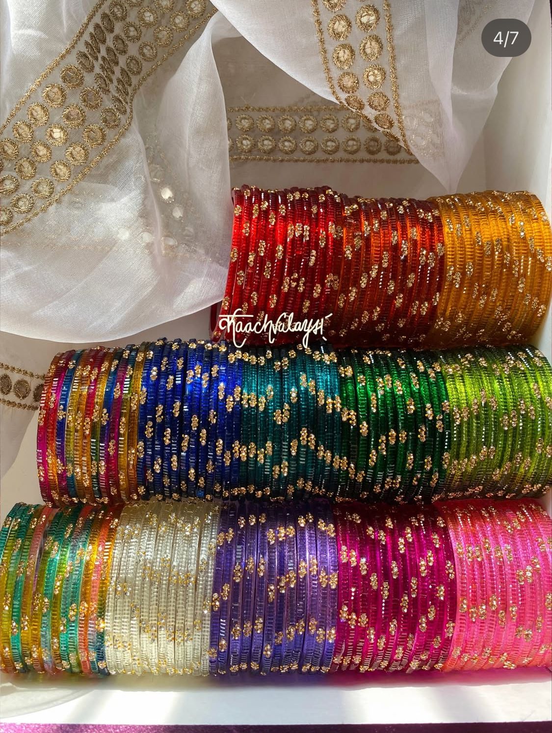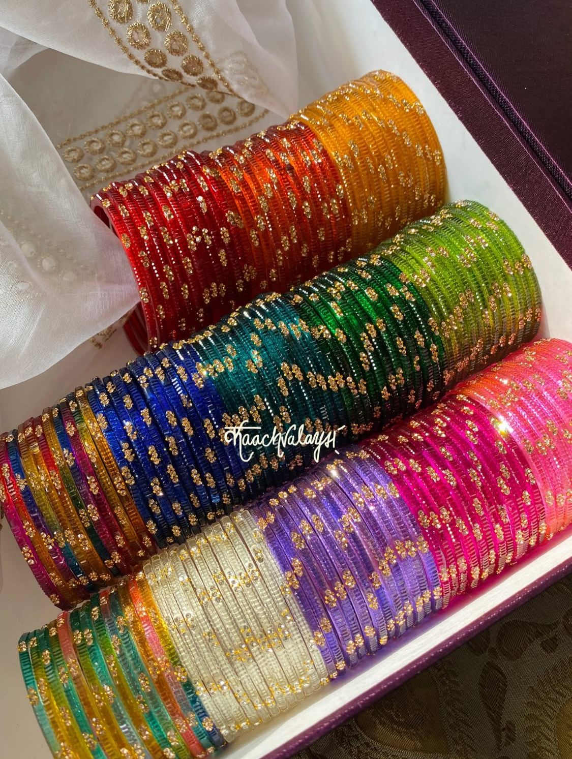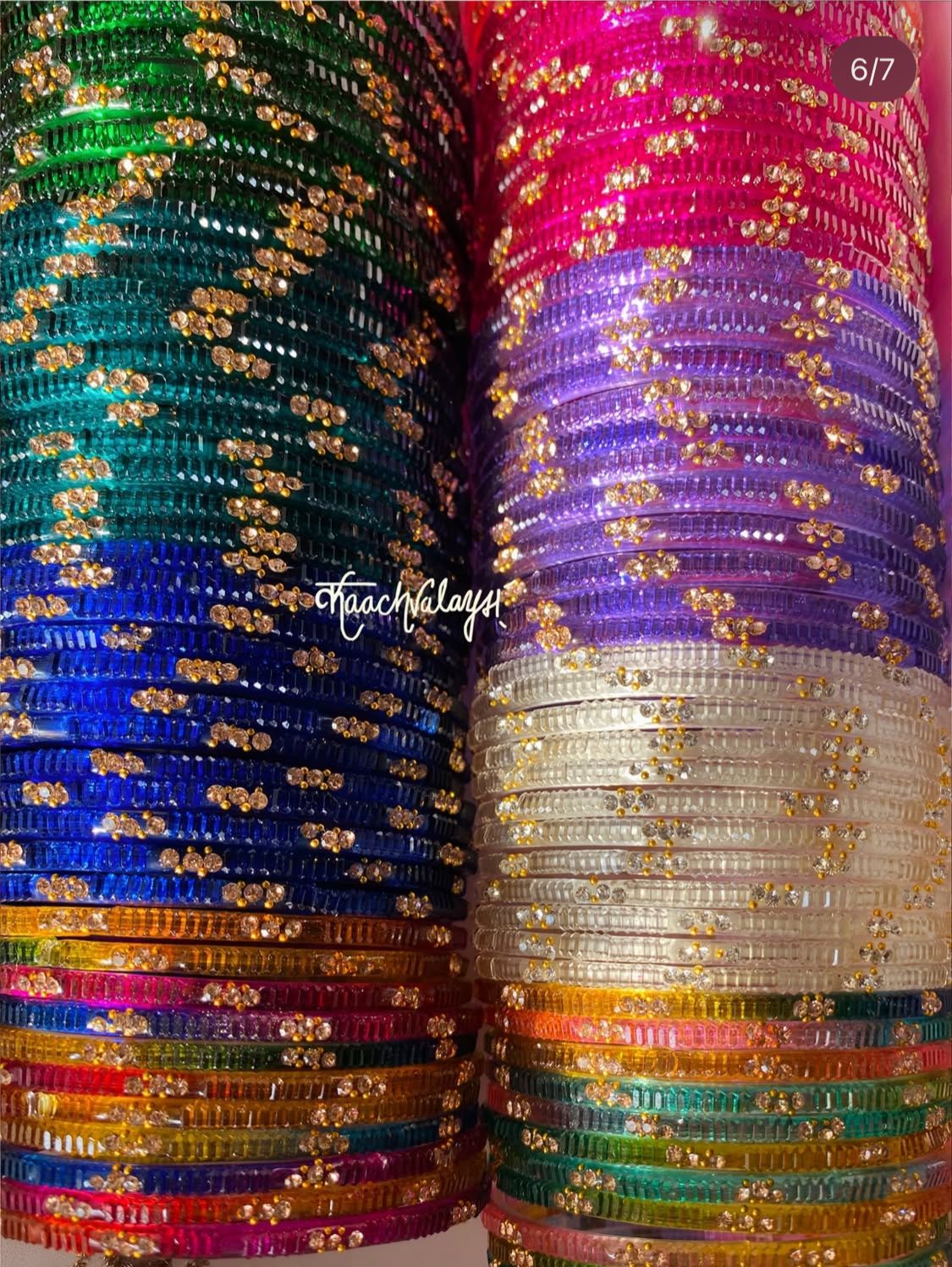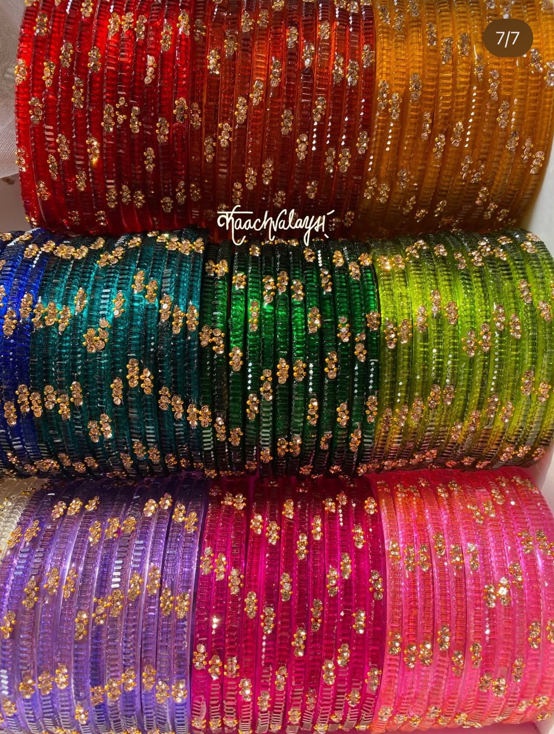 Irha Bangles with intricate detailing, available in 13 shades.