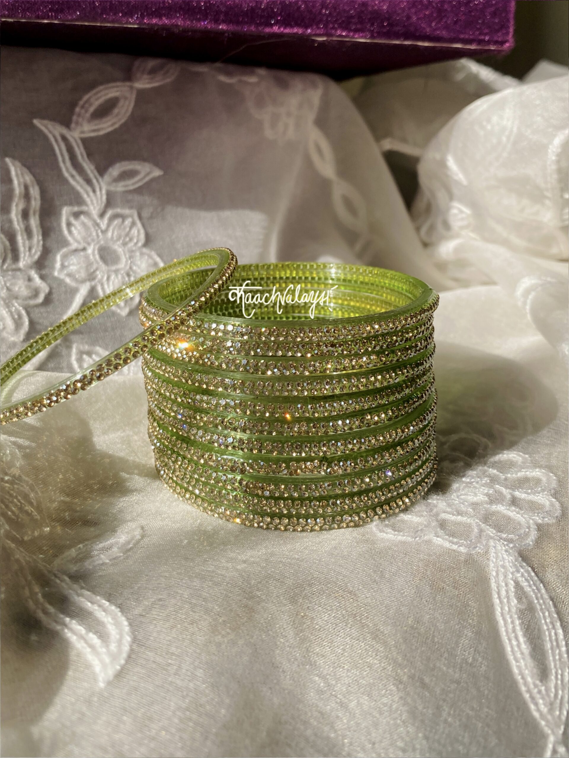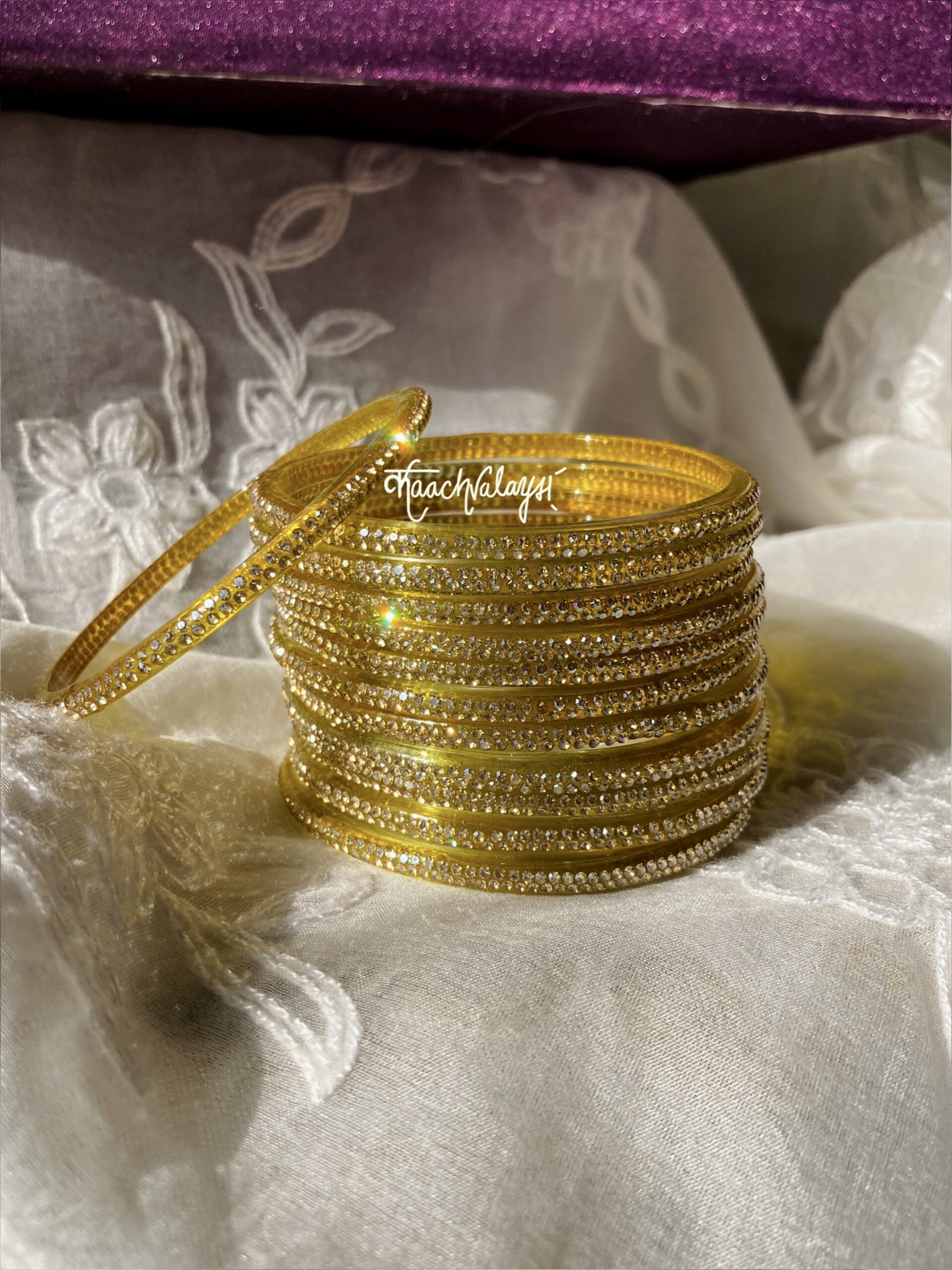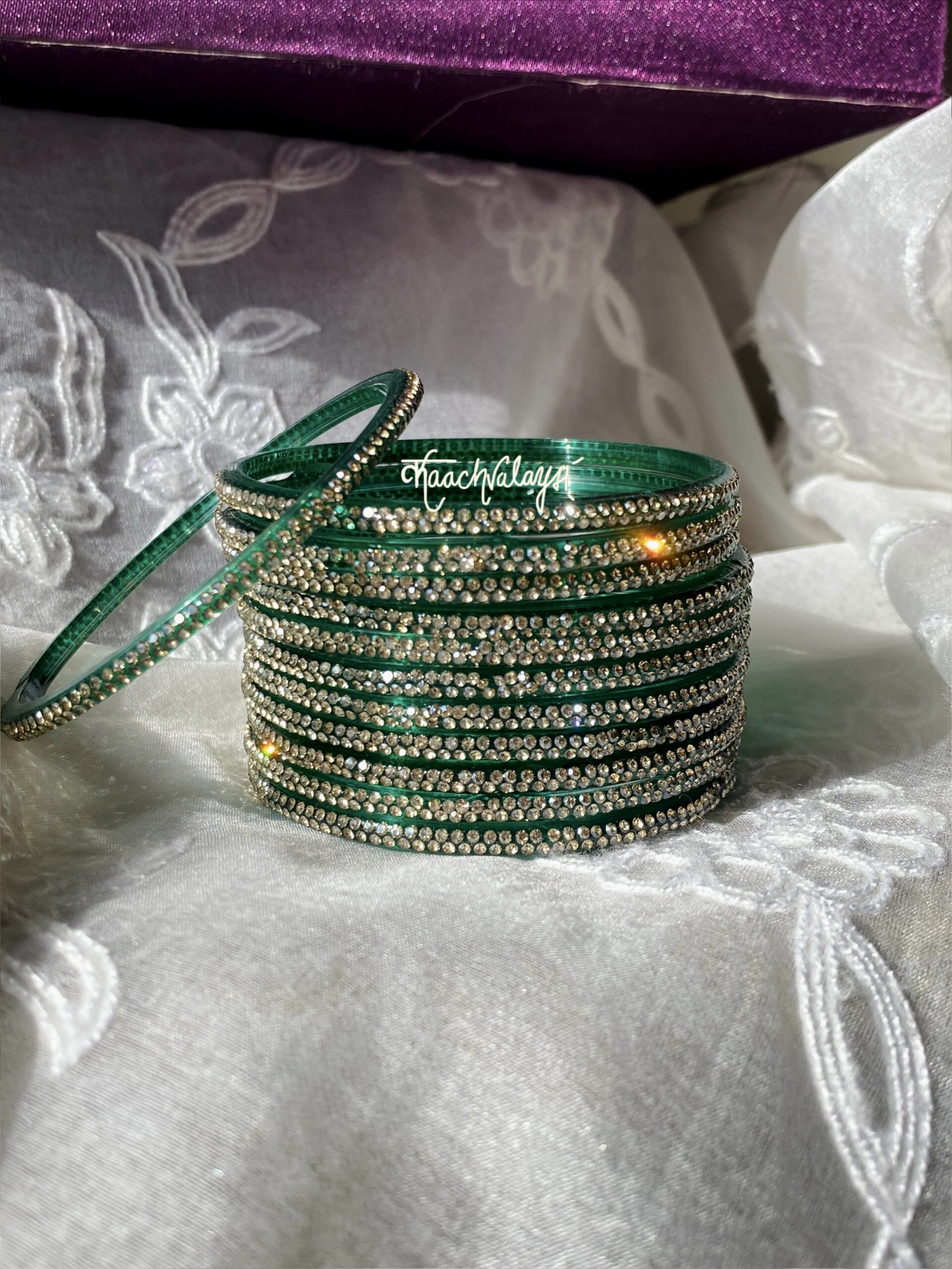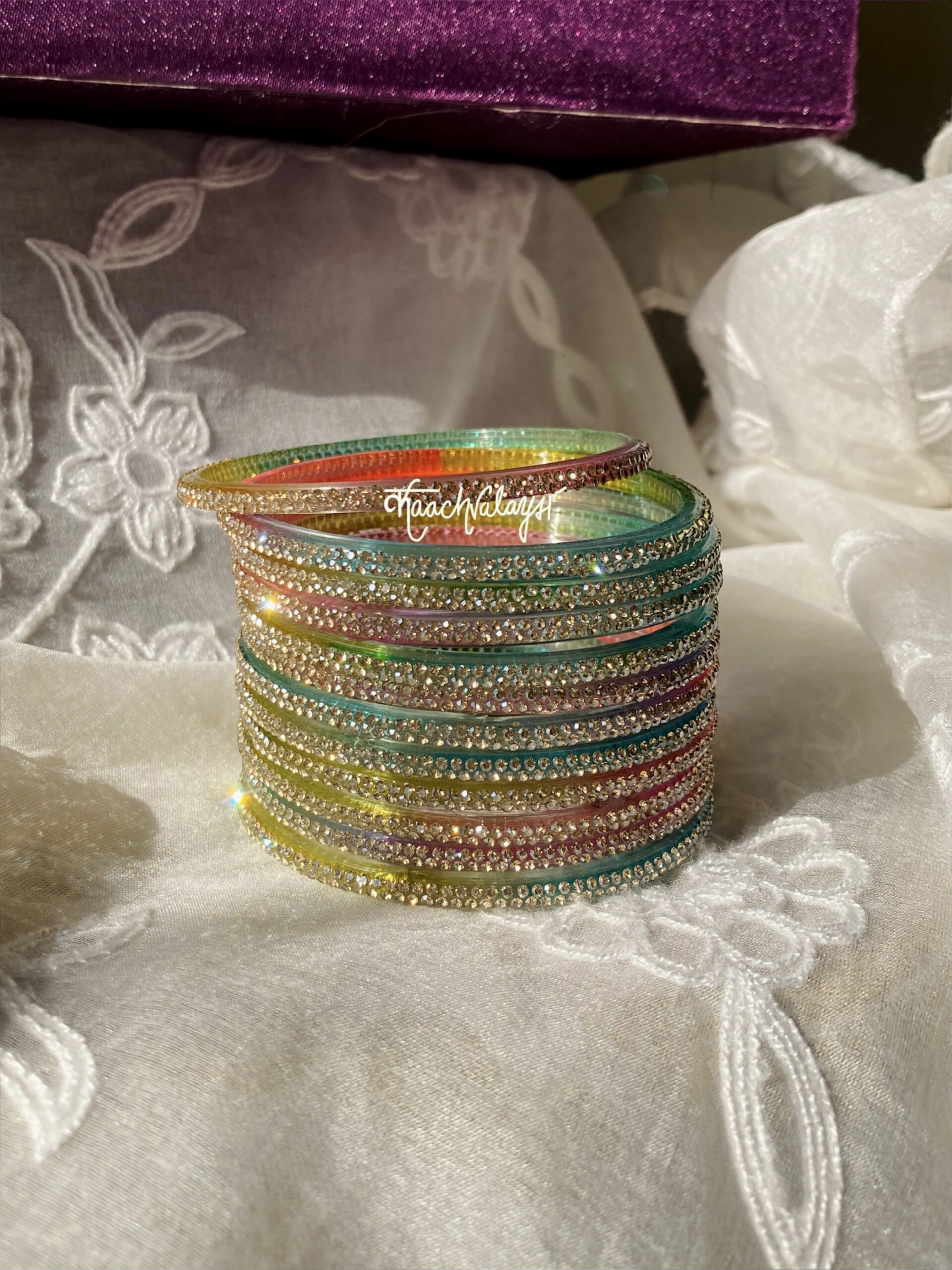 Aadya Bangles with glimmering zircon work. Available in 12 different shades.