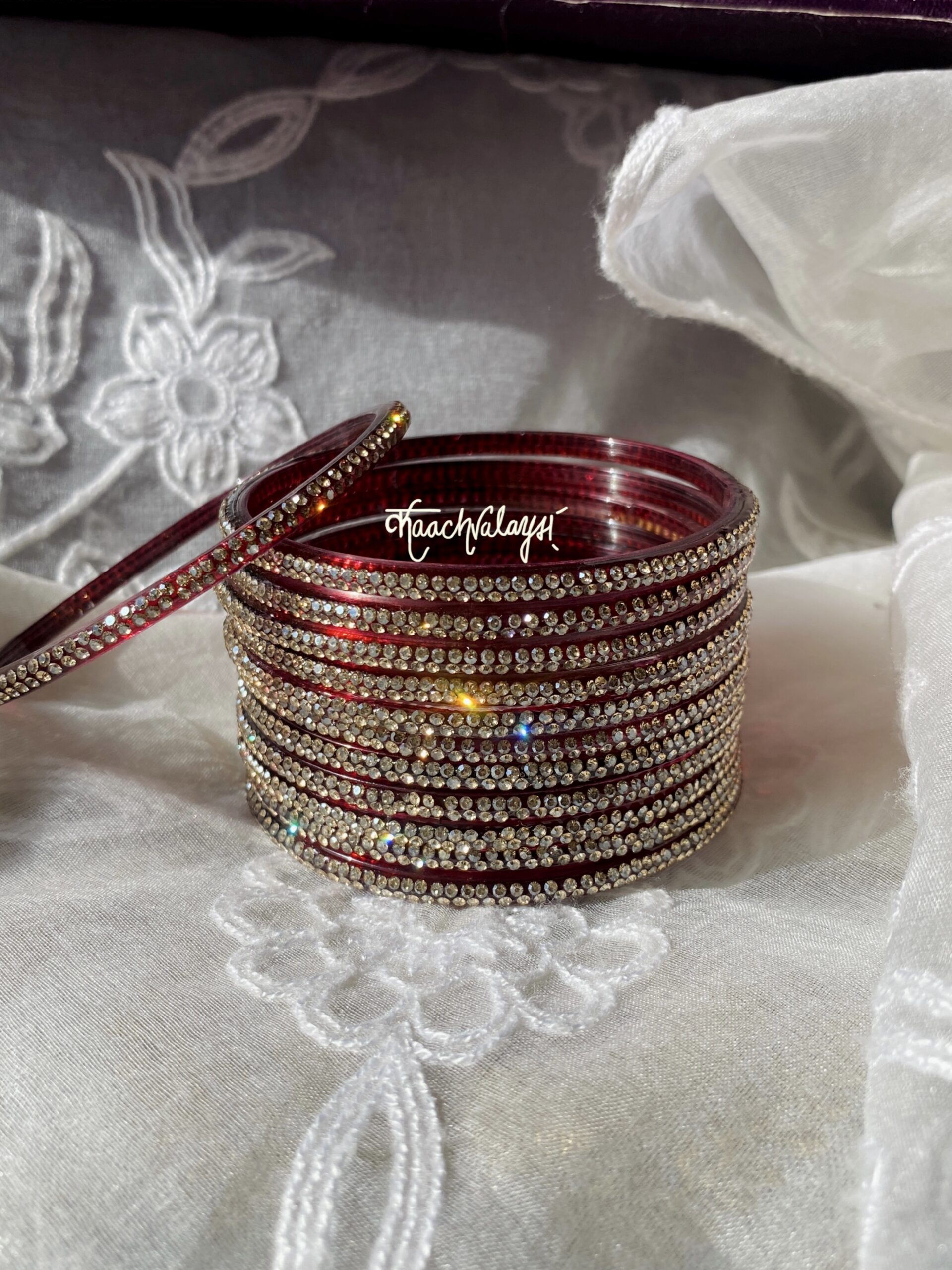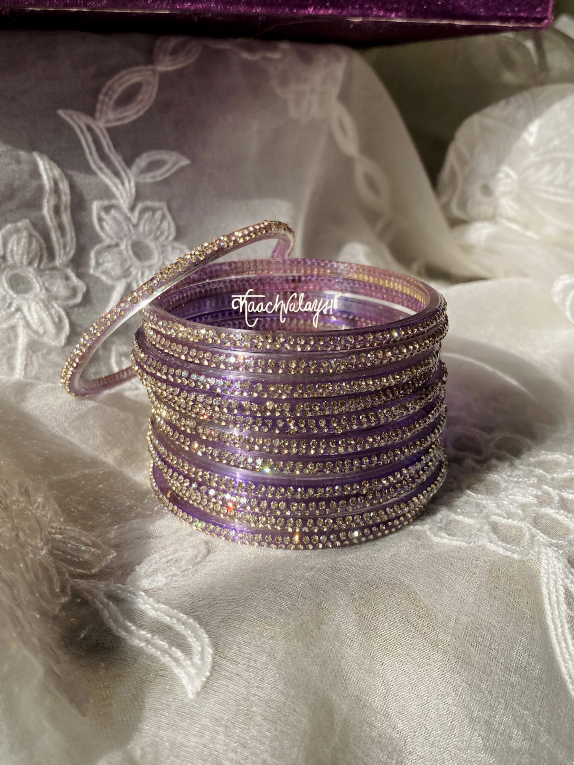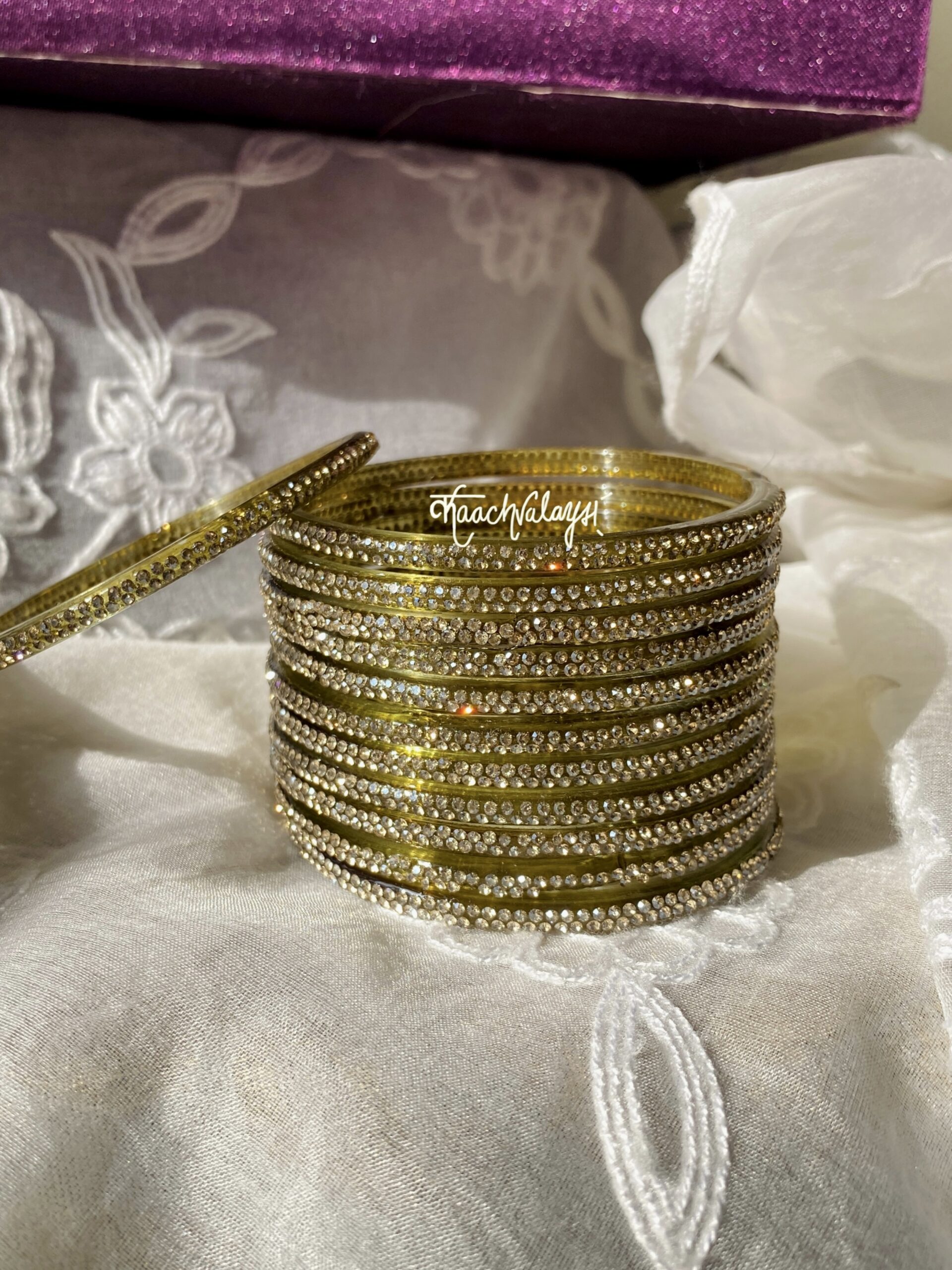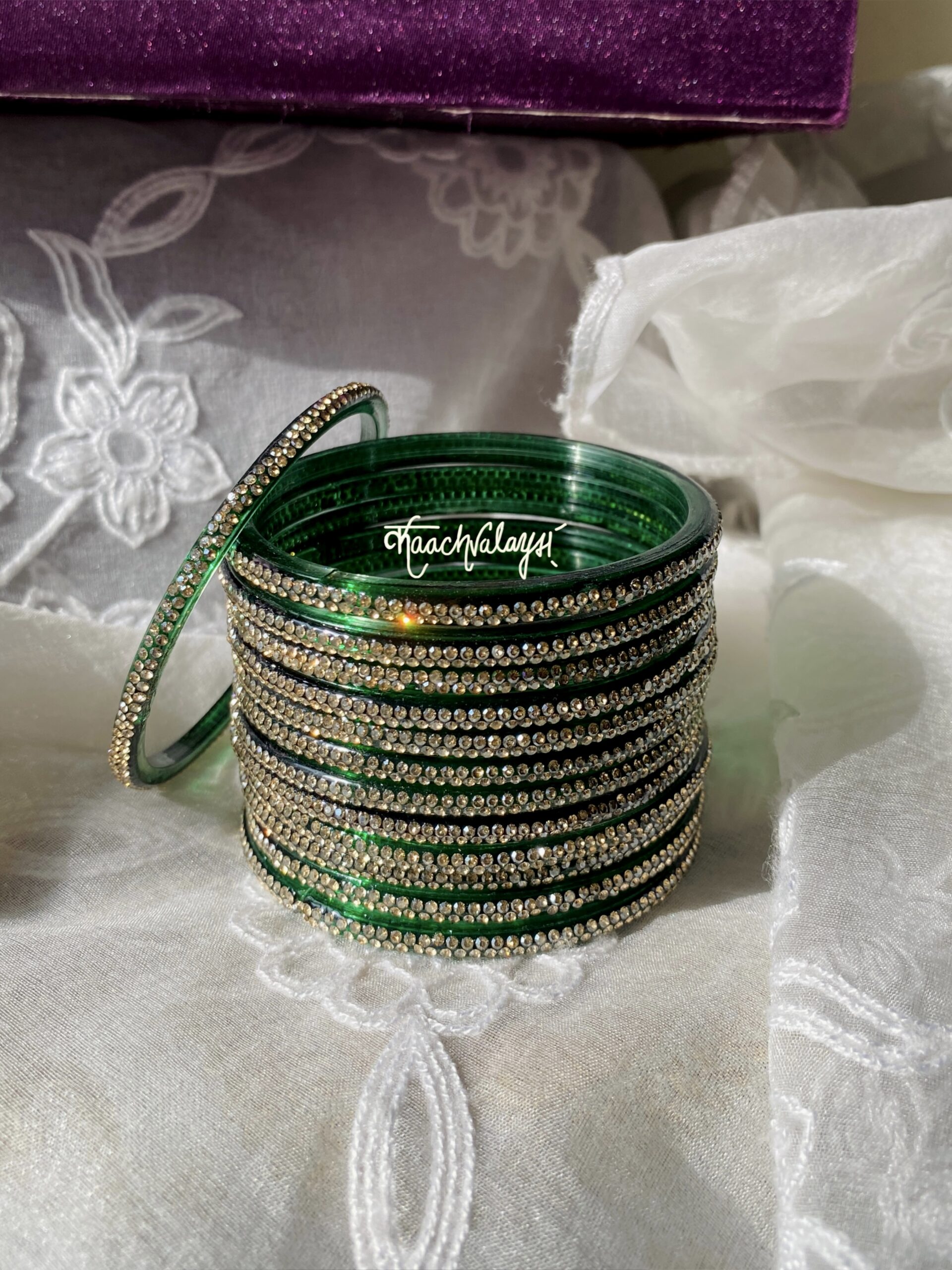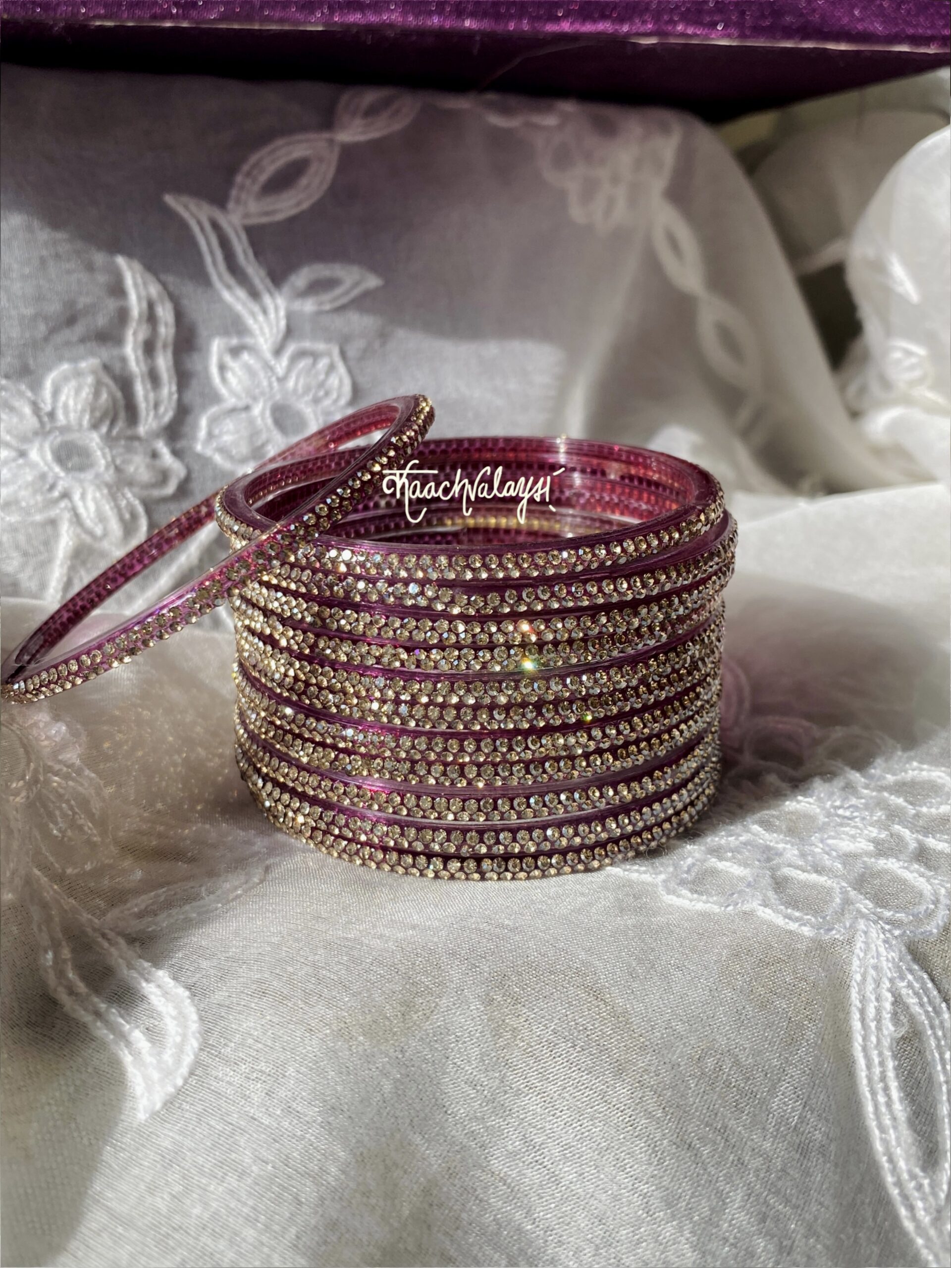 Aadya Bangles with glimmering zircon work. Available in 12 different shades.