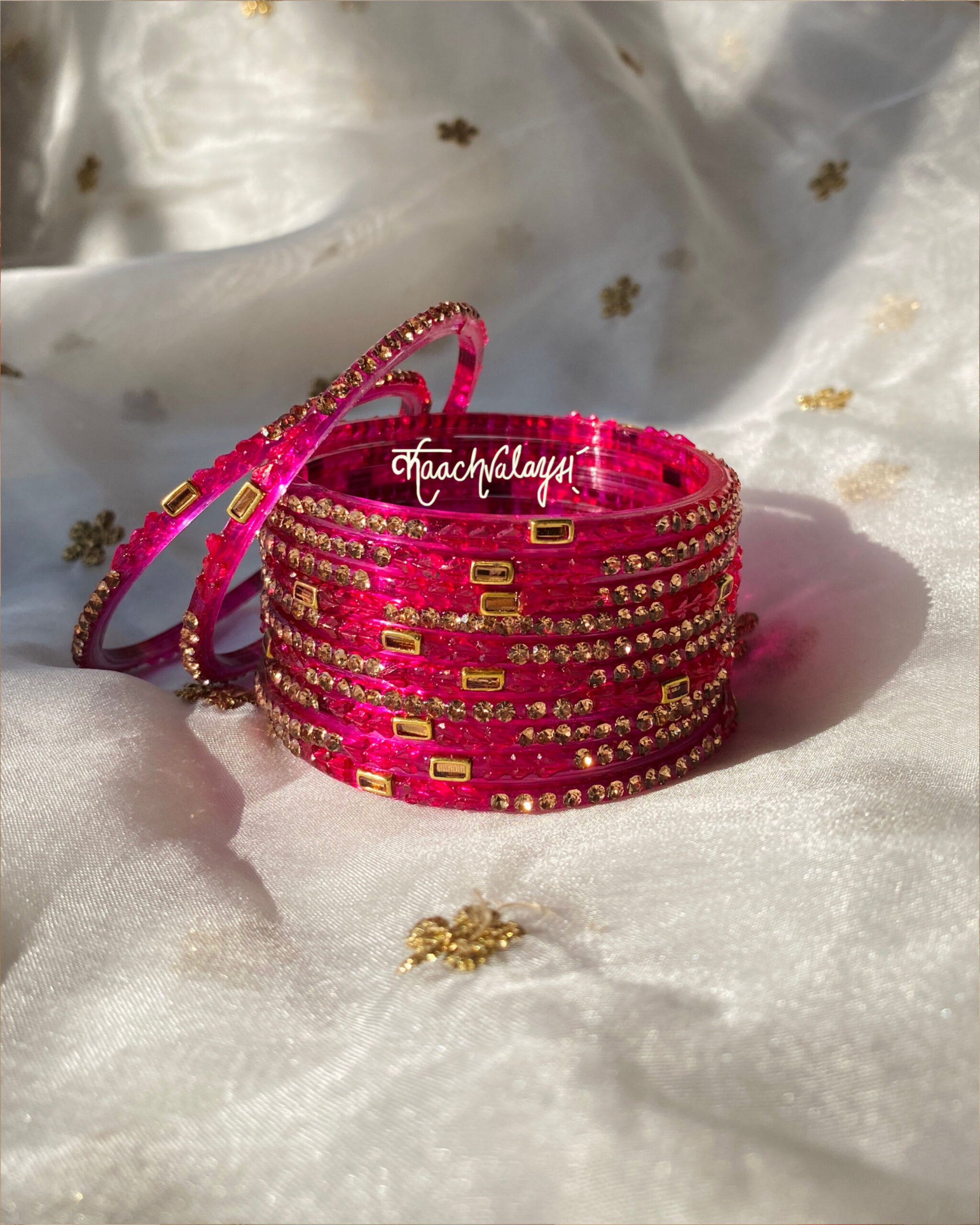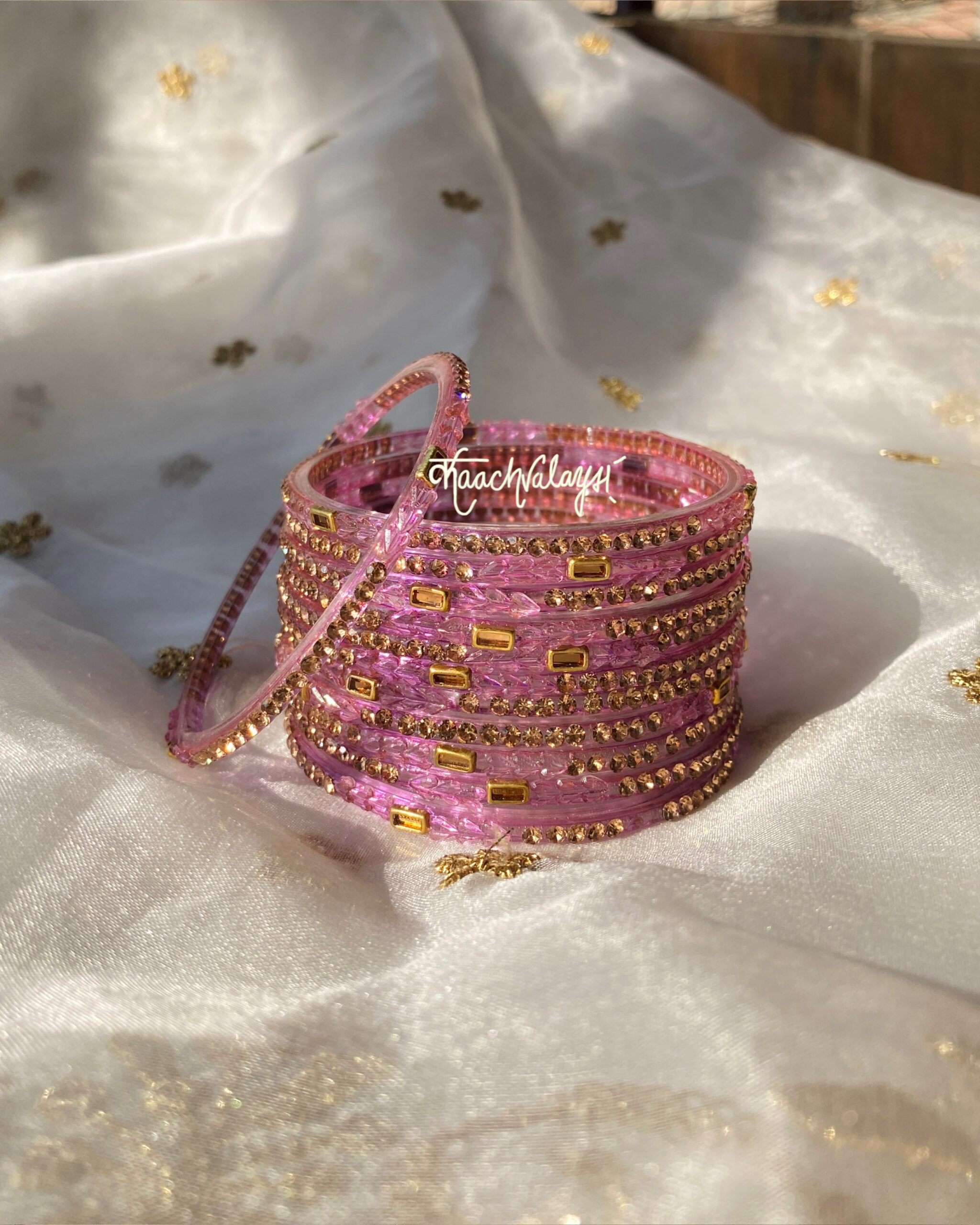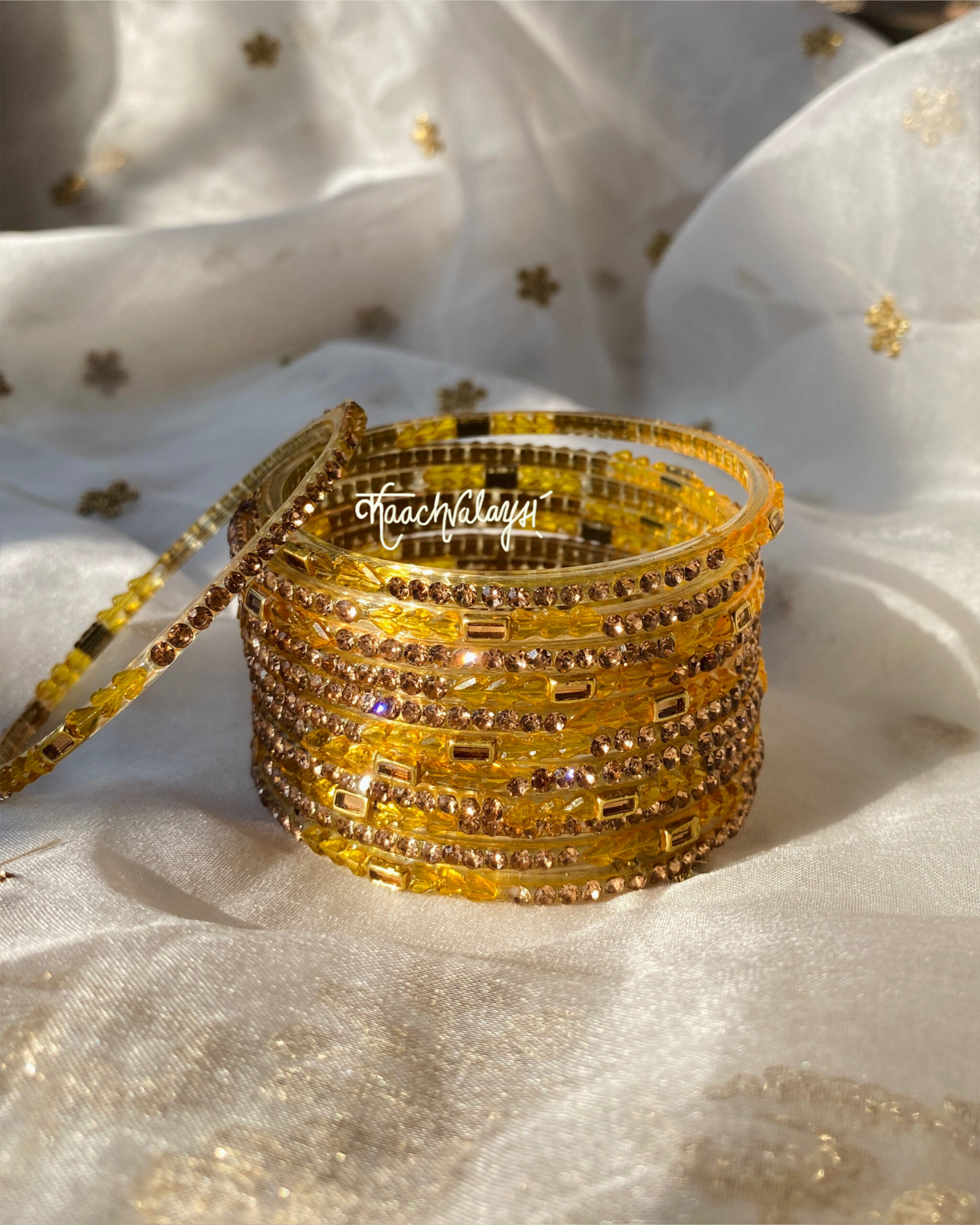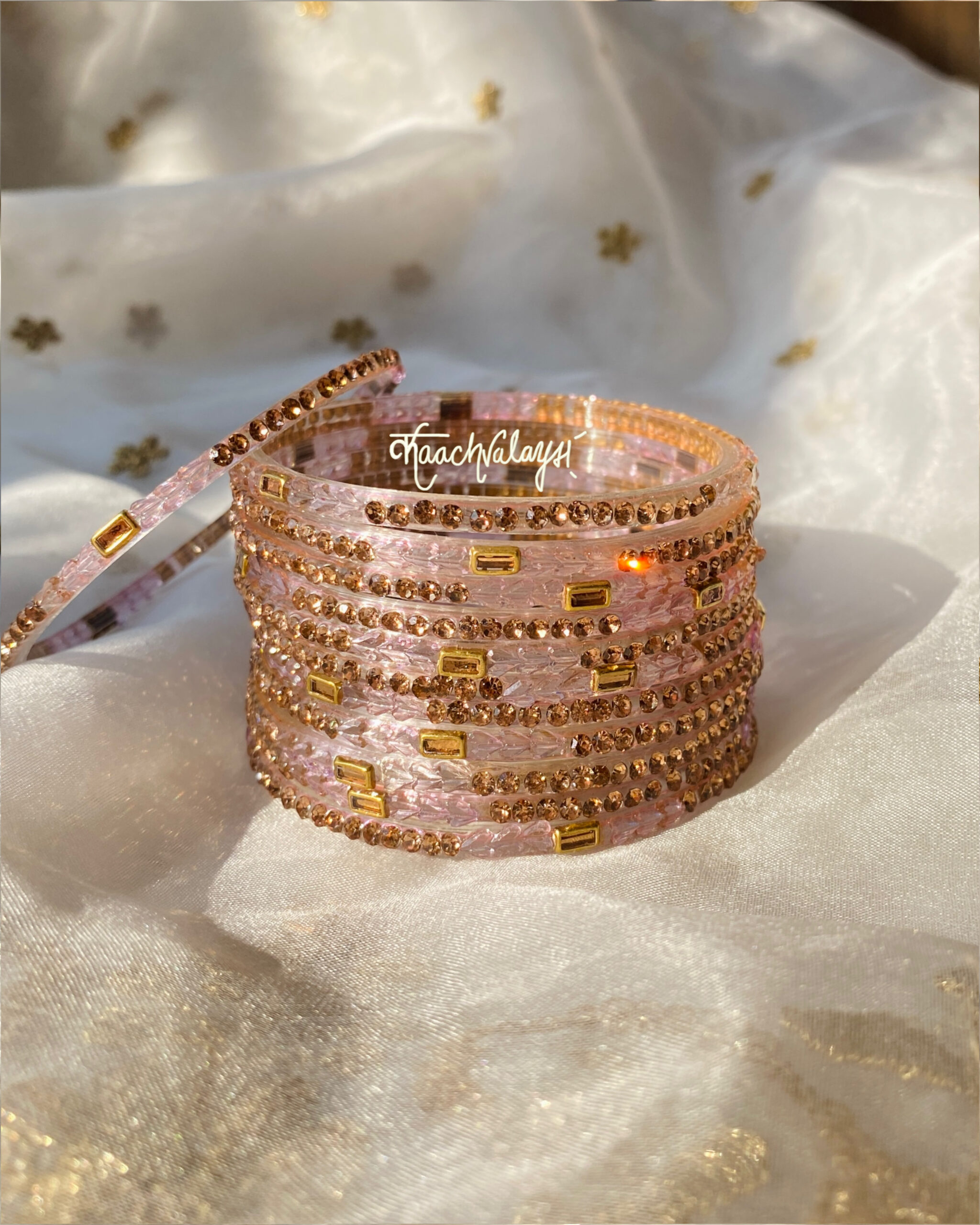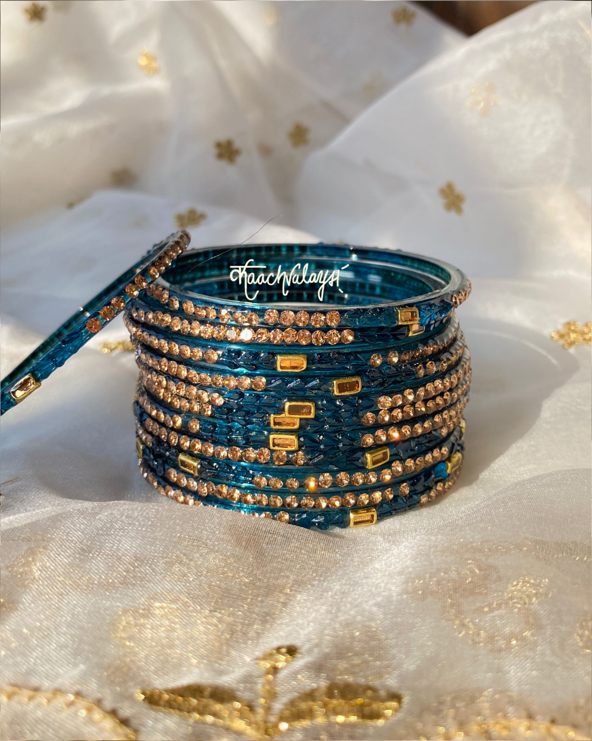 Khwab bangles in 10 mesmerising shades, embellished with intricate zircon and stone work.