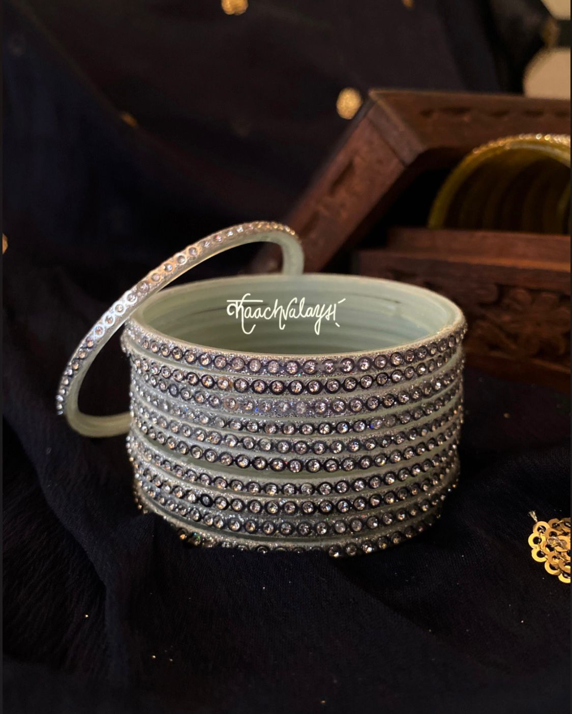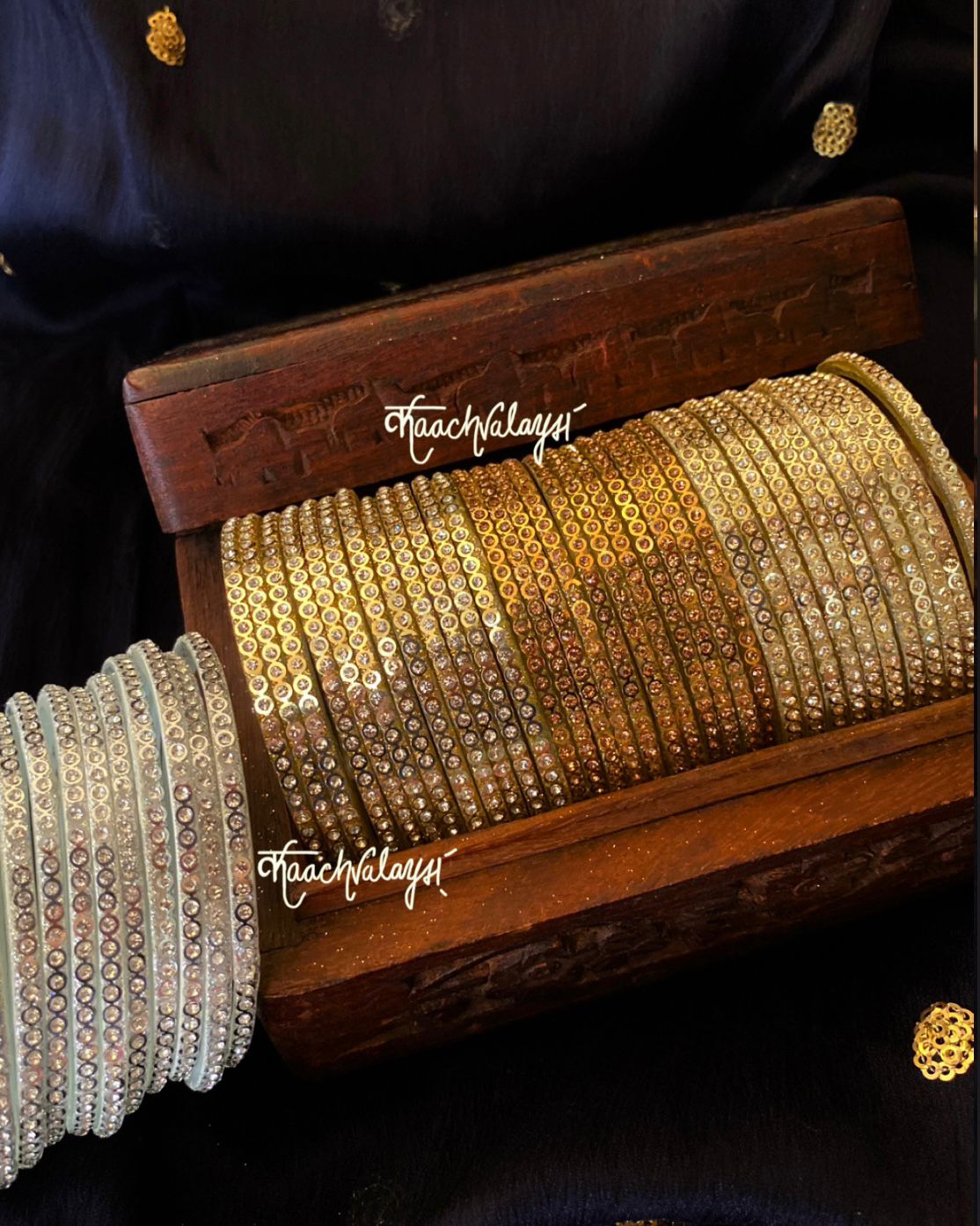 Mahtab Bangles in 4 glimmering shades. Sizes 2.2, 2.4, 2.6, 2.8 (Note: Shades might slightly vary due to the lighting)
