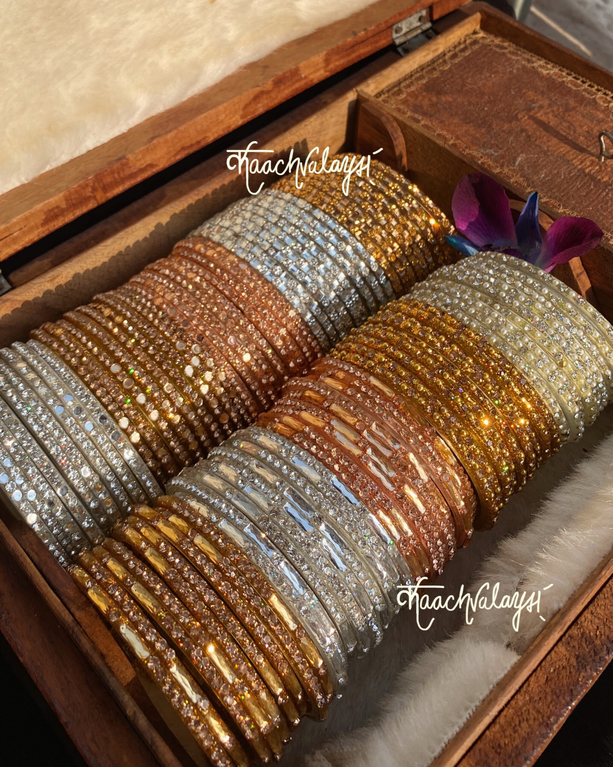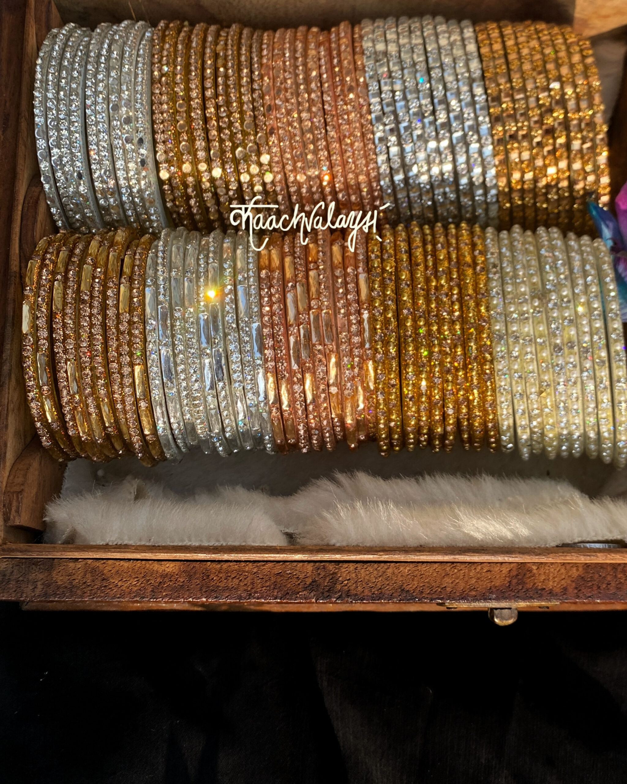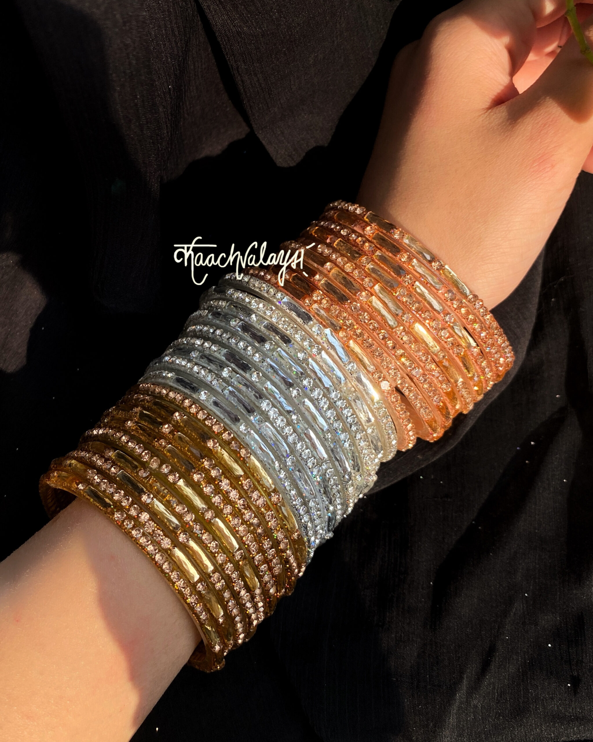 Set of 10, featuring four different designs- each in silver, gold, and rose gold shades.