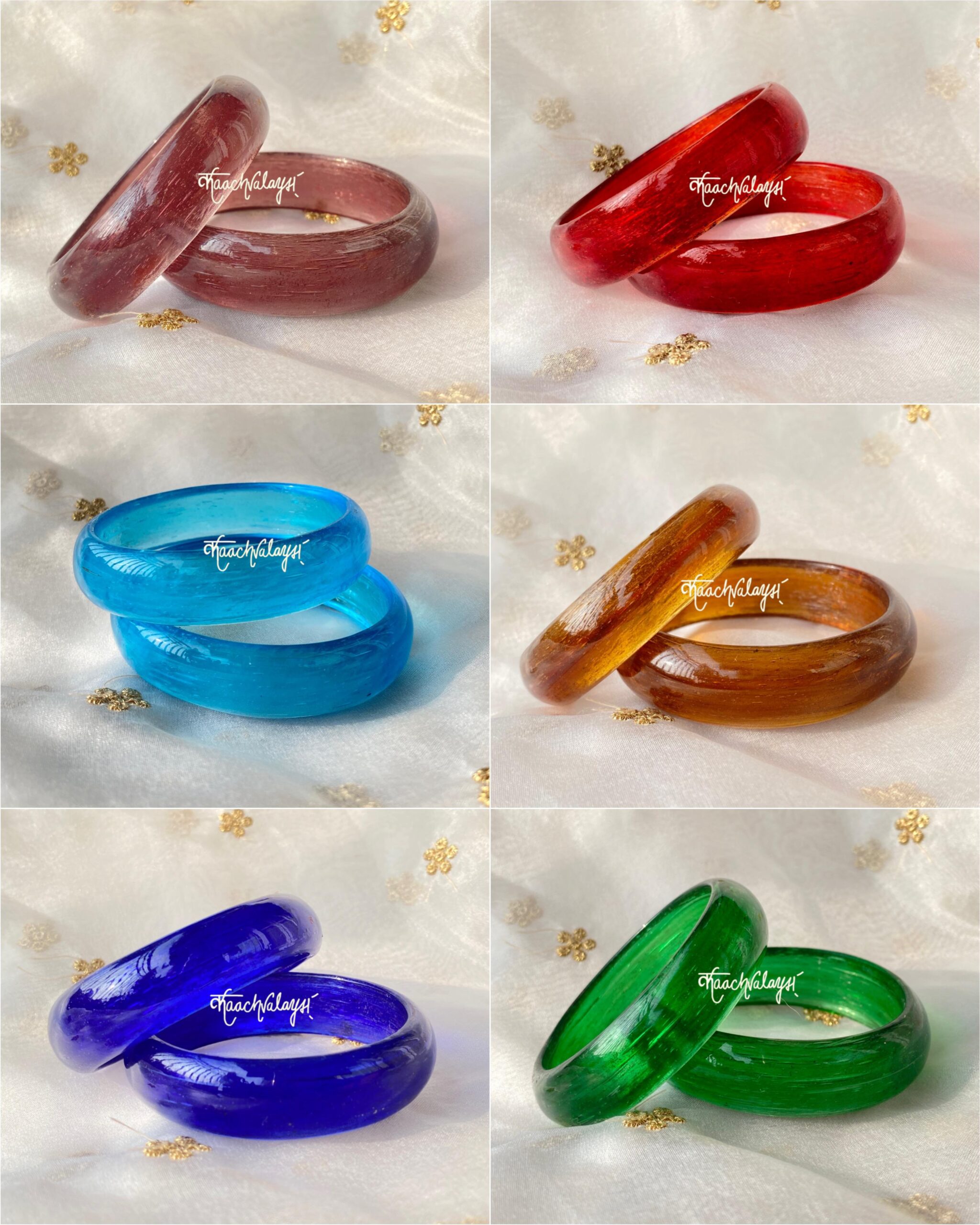 Glass kangan set of 6 shades, sizes 2.2, 2.4, 2.6, 2.8, 2.10