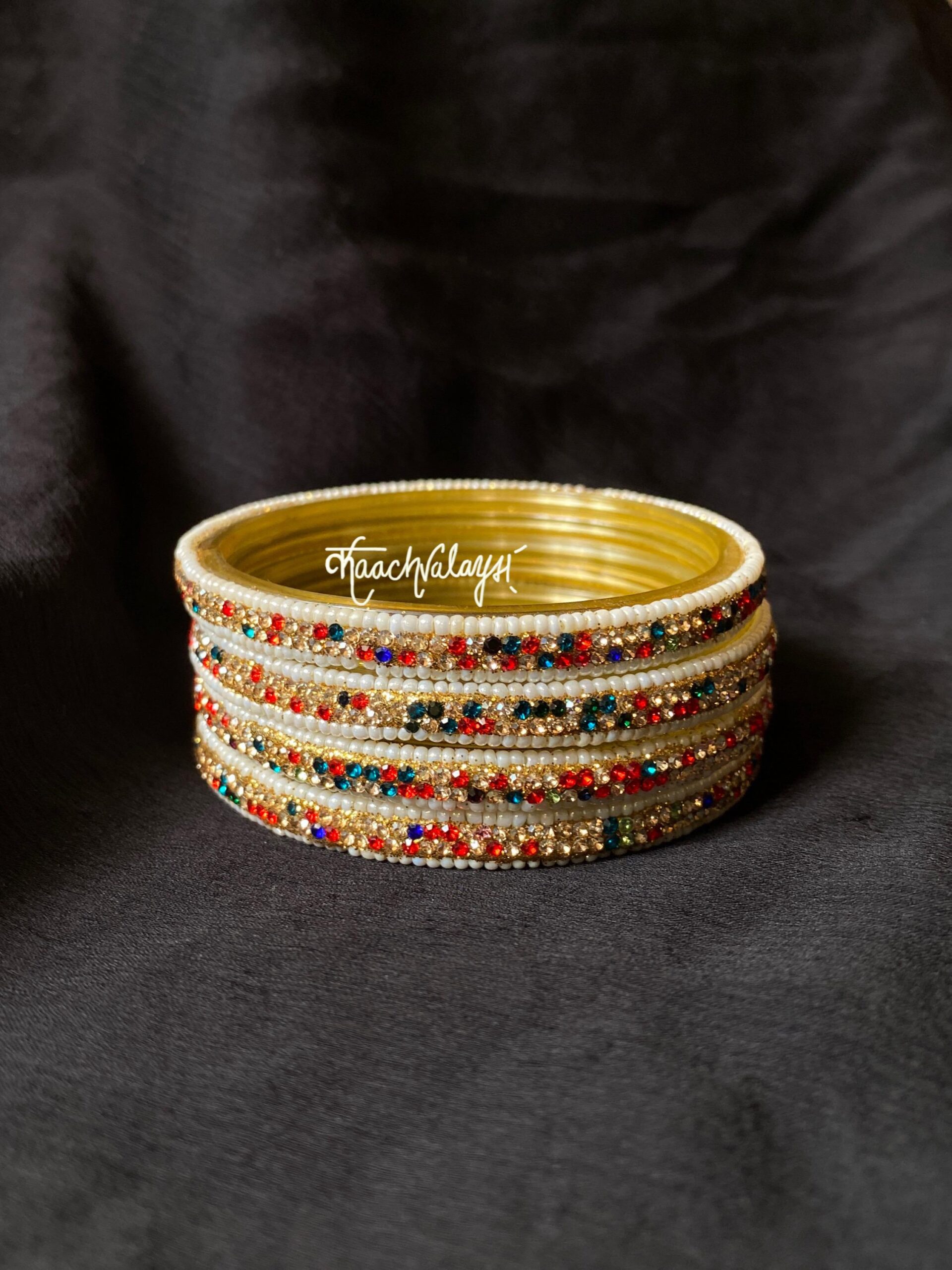 Mukti kangan with zircon work and pearls. Sizes 2.4, 2.6, 2.8