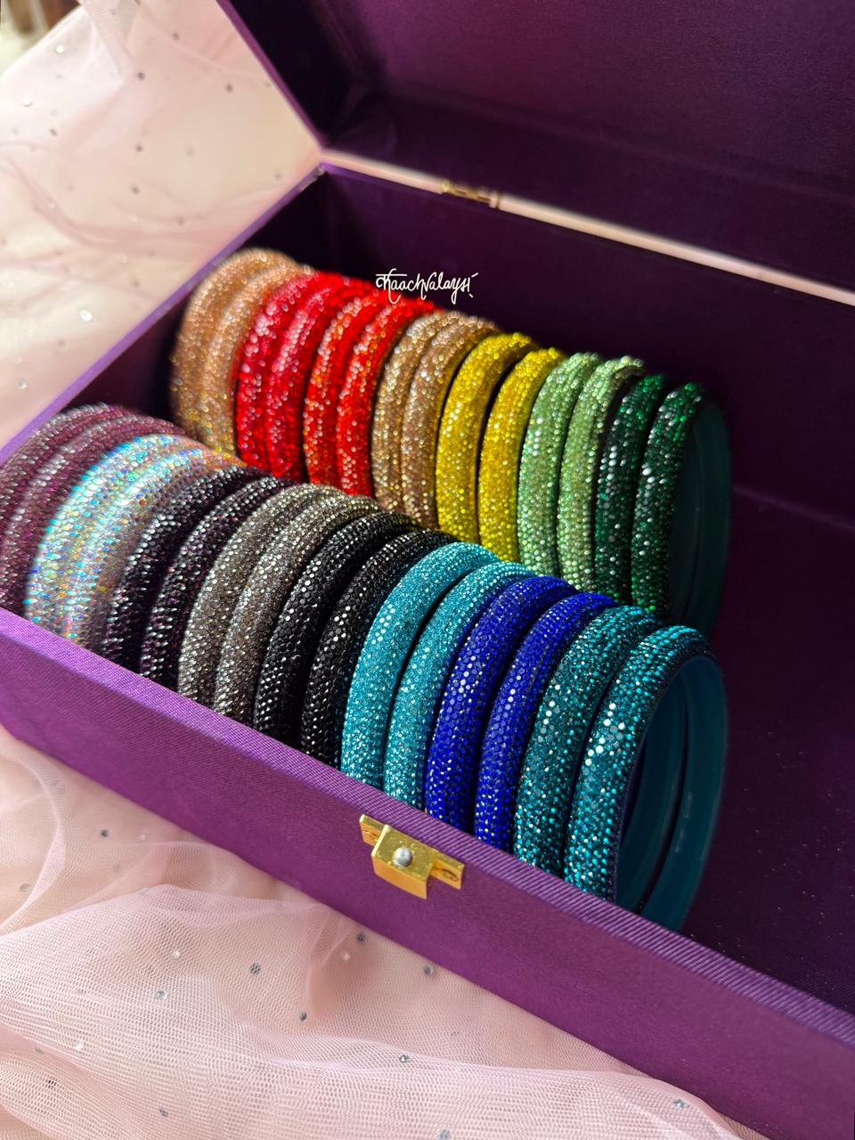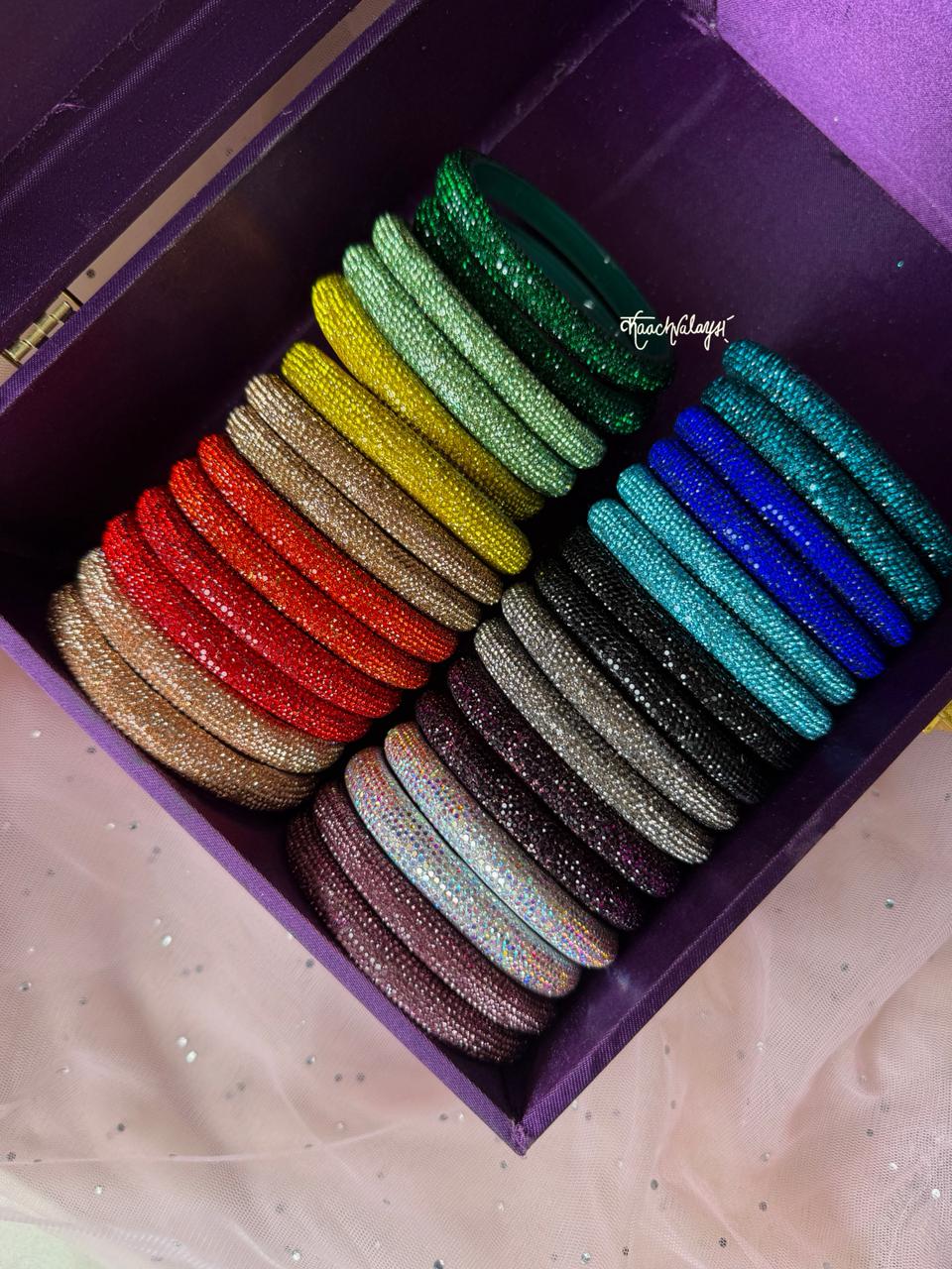 Zircon Kangan set. Comes along with a Kaachvalaym gift box. (Dimensions in Inches- Length- 10.5, Breadth-7.6, Height- 4.2)
