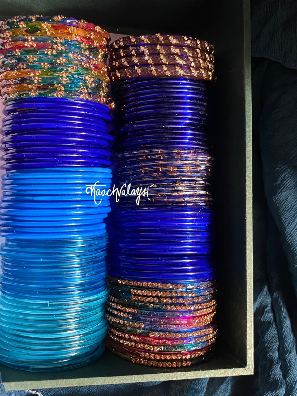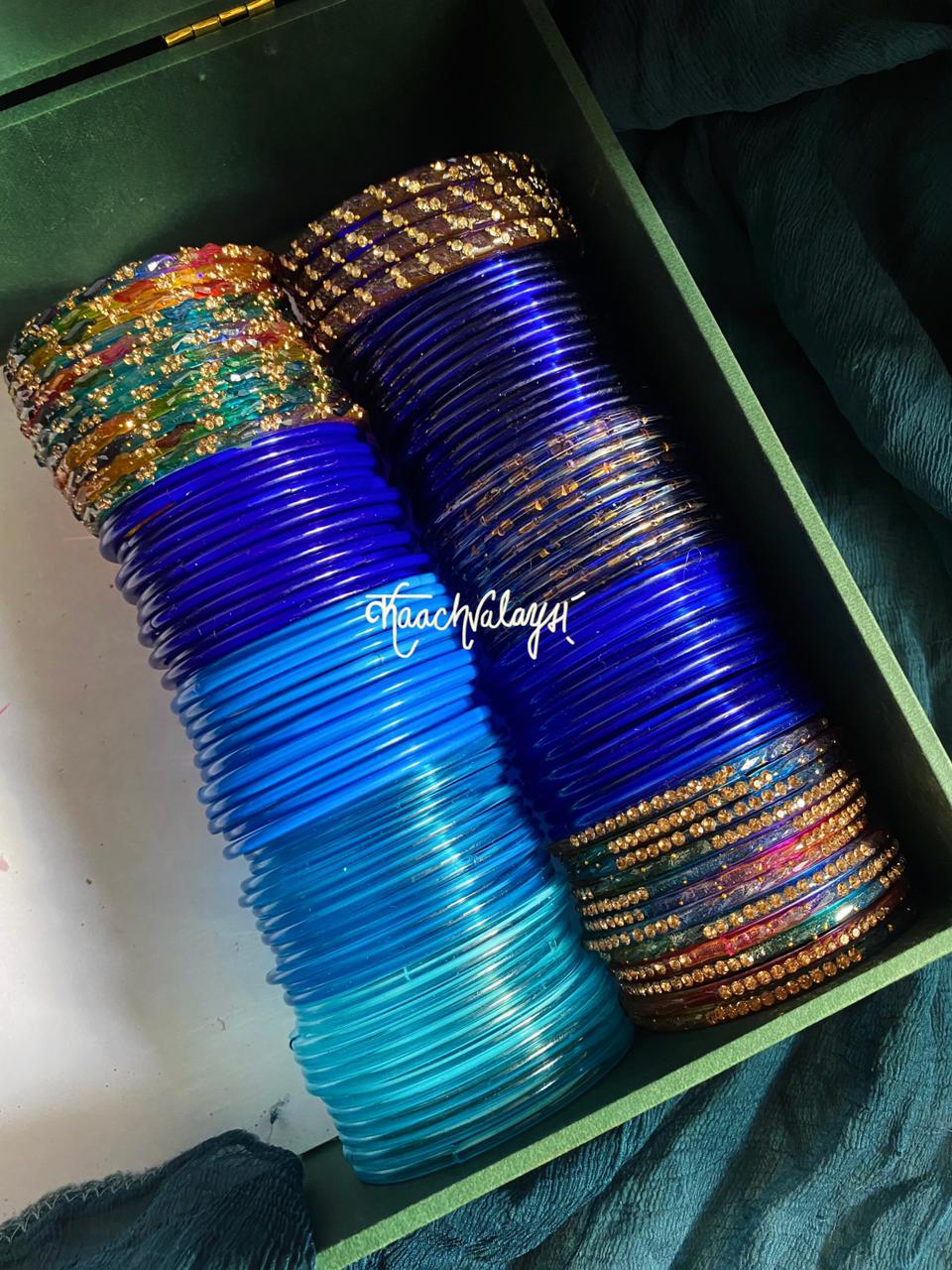 Set of 9 blue bangles (a dozen each), set of 4 blue kangan