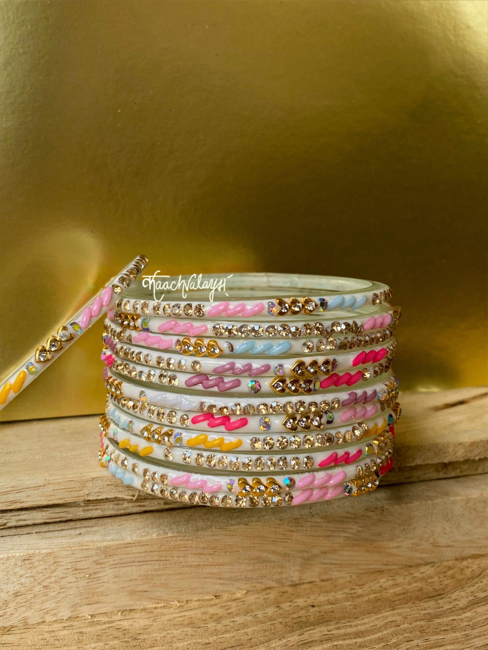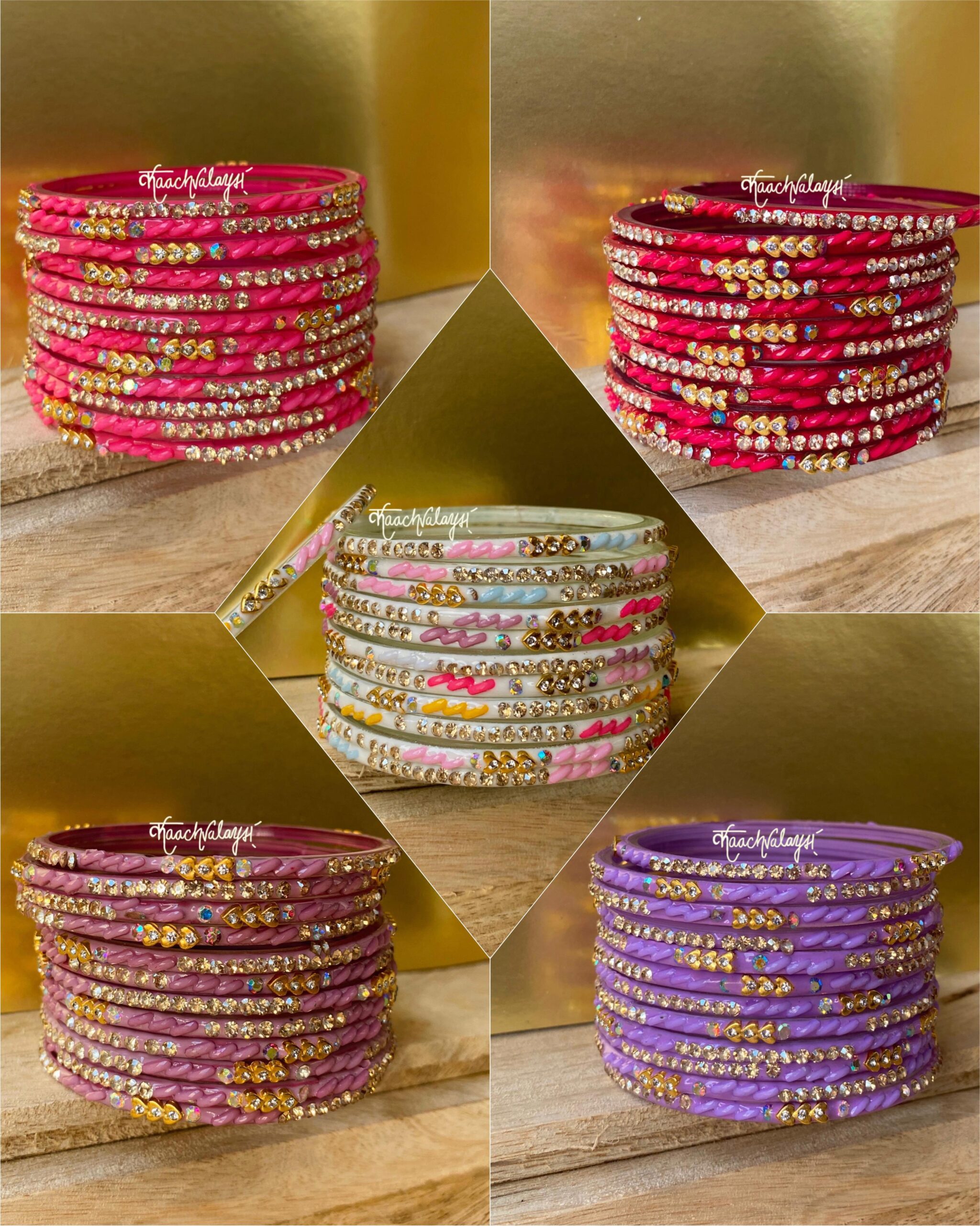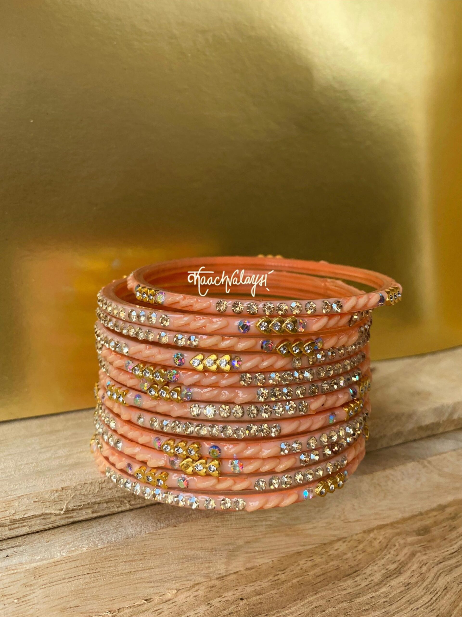 Sweetheart bangles with matte finish, with heart stones and zircon work.